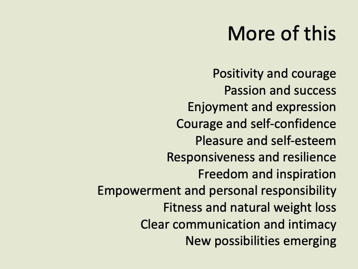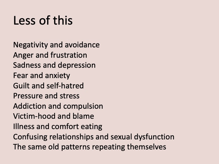 The general idea is to disconnect you from the things or people that no longer serve you and to clear any blockages from the relationships between you and your nearest and dearest. As we do this natural motivation, action, and growth can emerge.